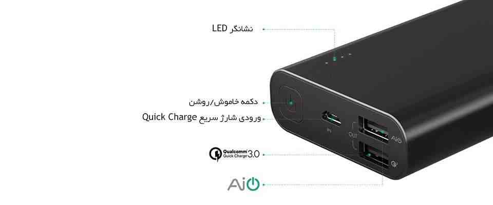 شارژ شدن سریع پاوربانک (با شدتجریان ۲.۰ آمپر و بالاتر), امکان شارژ تبلت (با شدتجریان ۲.۰ آمپر و بالاتر), تکنولوژی Quick Charge ۳.۰, تخصیص هوشمند شدت جریان خروجی (Fit Charge), امکان شارژ کردن سریعتر موبایل (با شدتجریان ۲.۰ آمپر و بالاتر)